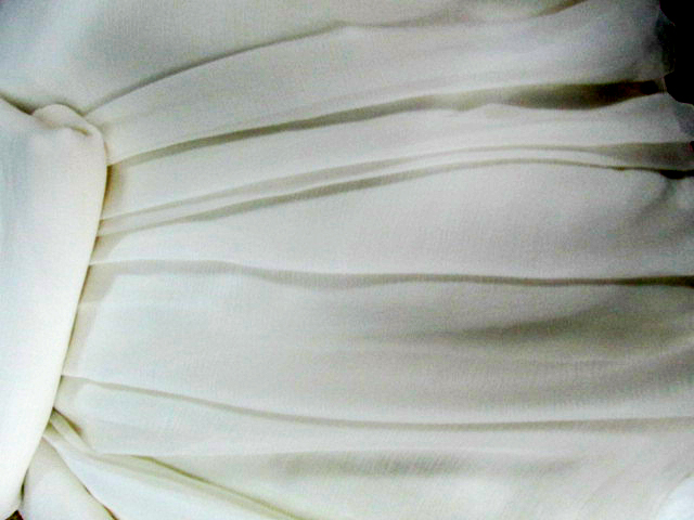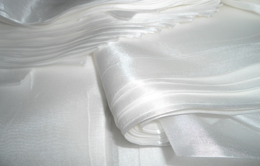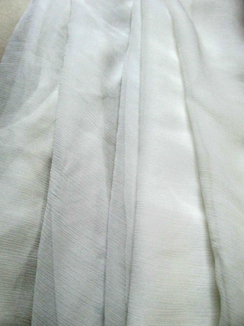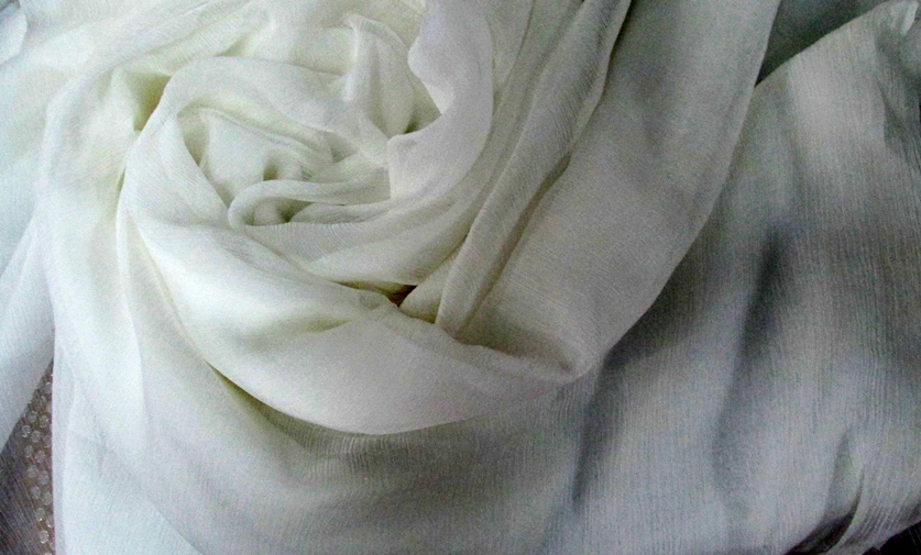 Chiffon is made from silk. Under a magnifying glass it resembles a fine net or mesh which gives chiffon some see through properties. Chiffon can be dyed to almost any shade. It is an elegant, sheer fabric with a soft, beautiful drape and crepe like texture. Chiffon is most commonly used in evening wear, especially as an overlay, for giving an elegant and floating appearance to the gown. It is also a popular fabric used in blouses, ribbons, scarves and lingerie. Like other crêpe fabrics, chiffon can be difficult to work with because of its light and slippery texture. Chiffon is available in 40 gm, 50 gm, 60 gm, etc.